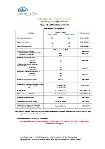 Note: Les données techniques ci-dessus sont des résultats typiques obtenus, à notre connaissance, de nos dossiers de contrôle de qualité. Des détails
